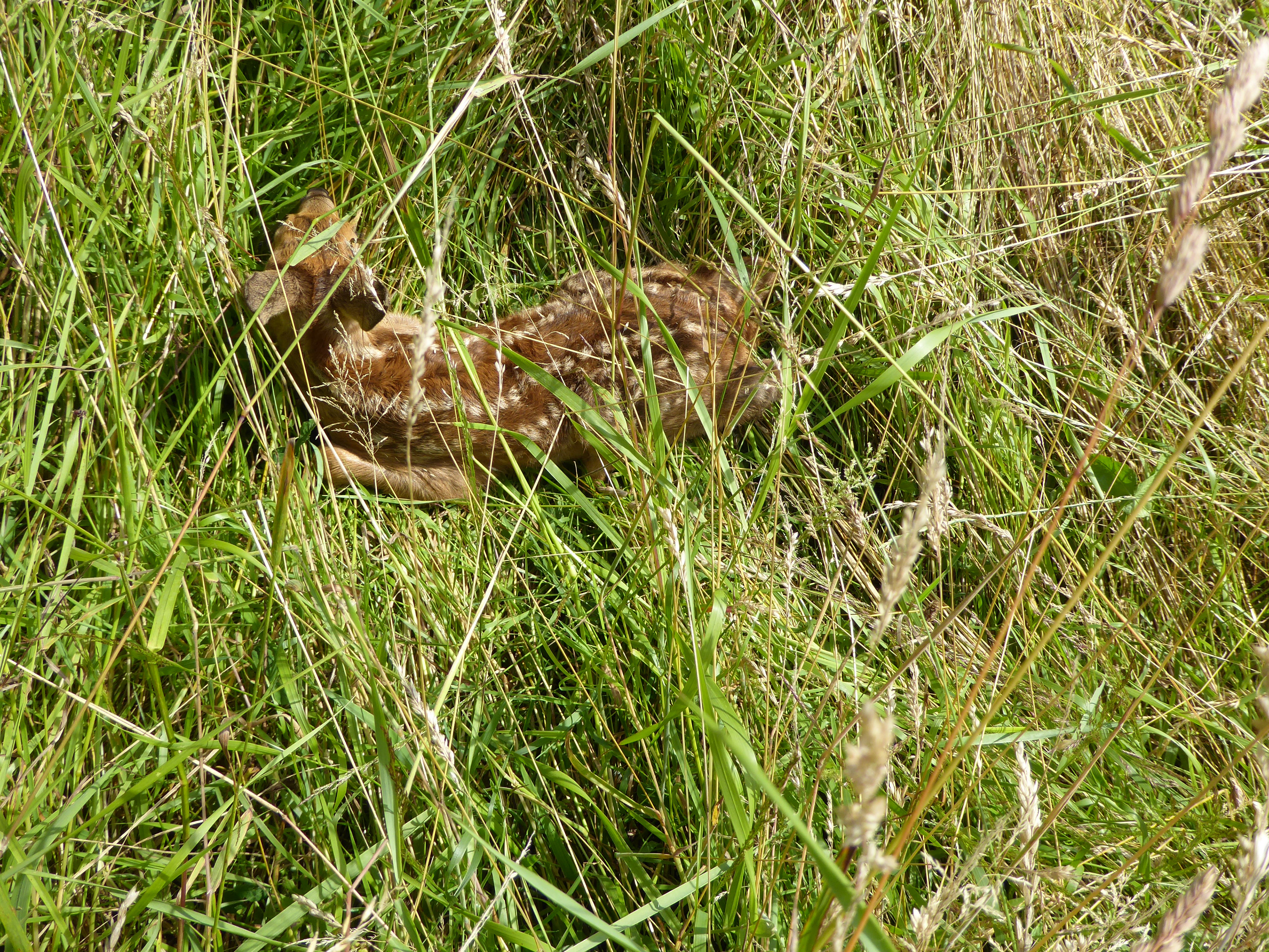 Diesen Morgen waren direkt vor dem Mähen auf allen drei Wiesen keine Rehe zu sehen und eine Katze machte sich rechtzeitig aus dem Staub.